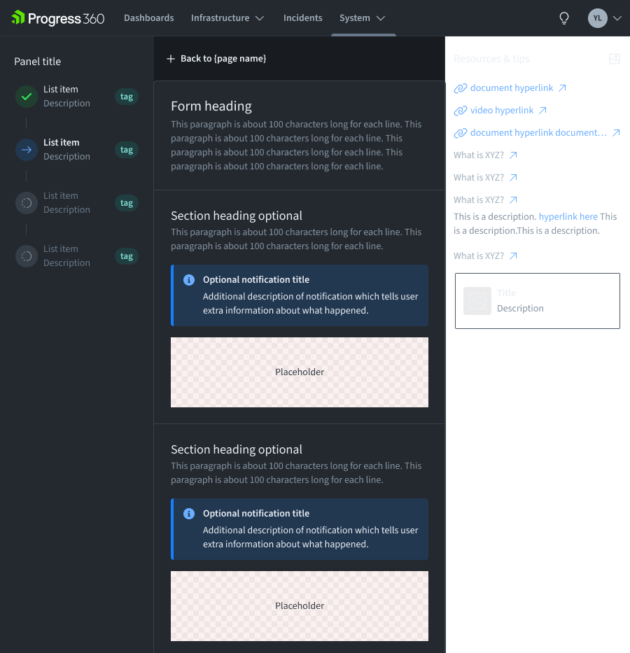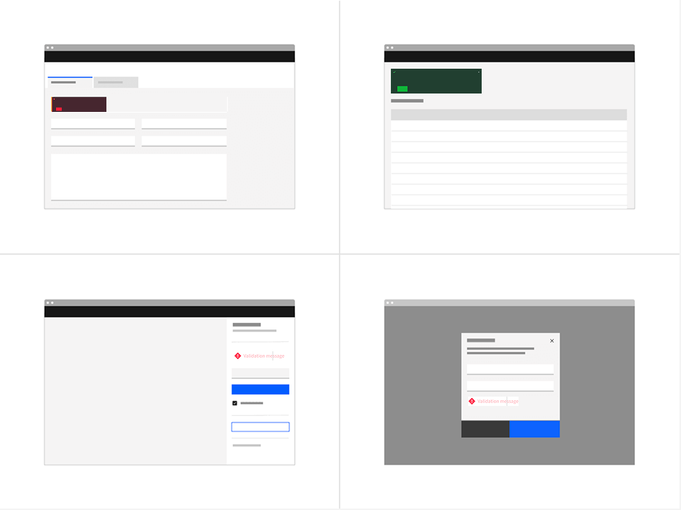 Inline notifications show up in task flows to notify users of the status of an action or system. Inline notifications usually appear at the top of the primary content area or close to the item needing attention.
