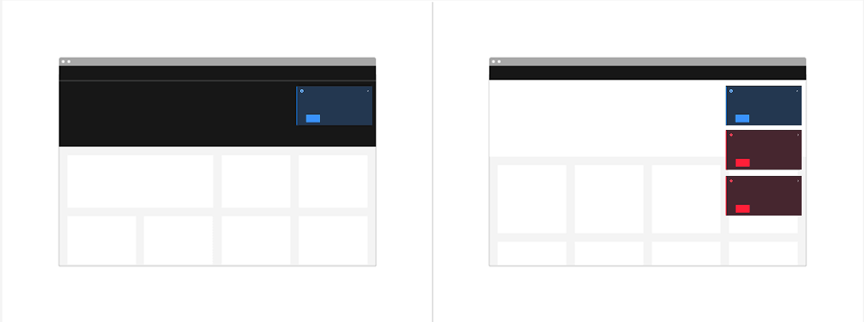 Toast notifications slide in and out from the top right of the screen. New toast notifications should appear at the top of the list, with older notifications being pushed down until they are dismissed.